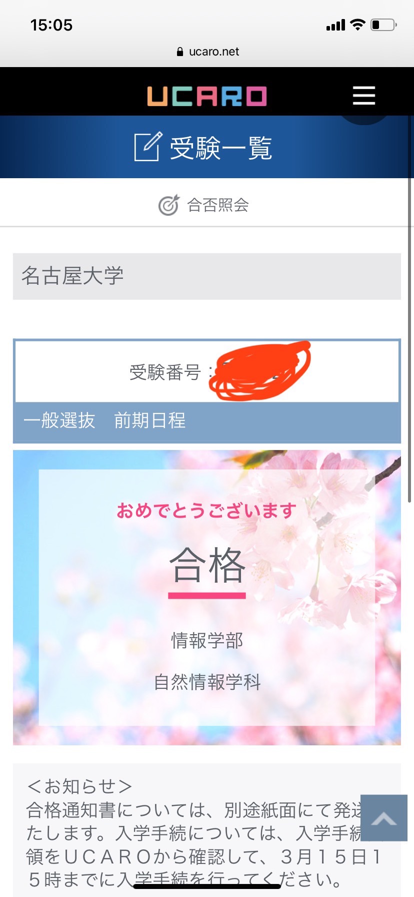 第一志望不合格になり